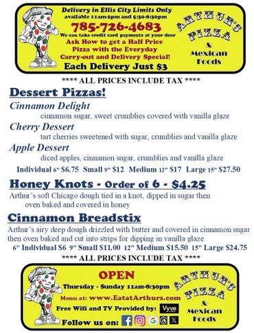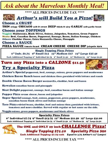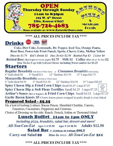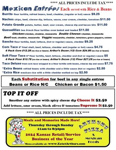 Arthur's Pizza & Mexican Foods OPEN THURSDAY to SUNDAY 11a - 8:30p